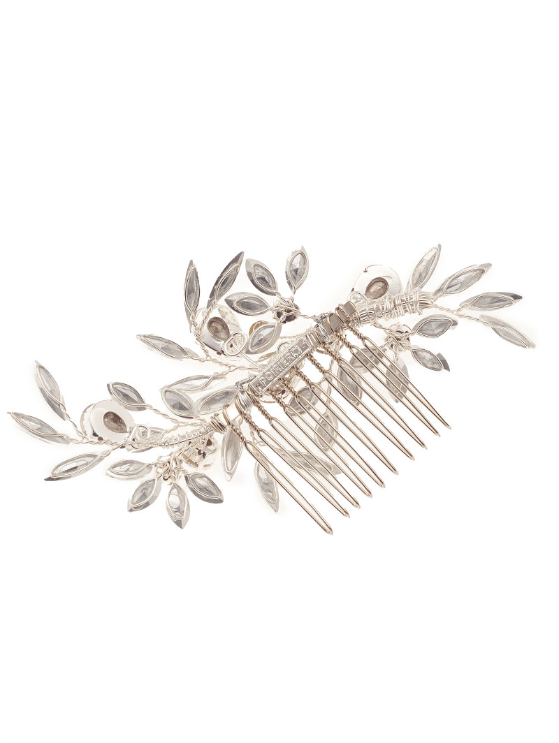 - Dieser Haarschmuck wird an einem Kamm befestigt und lässt sich so leicht in eine Brautfrisur integrieren.