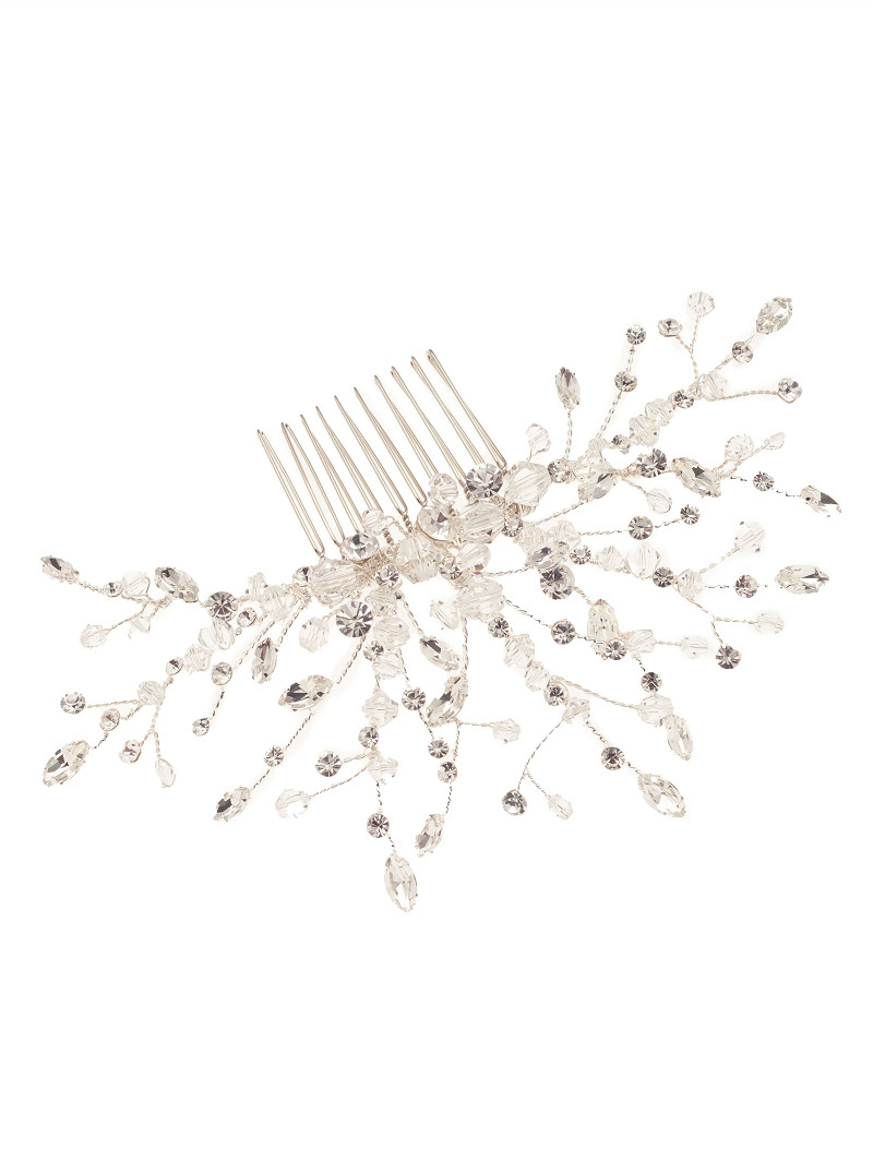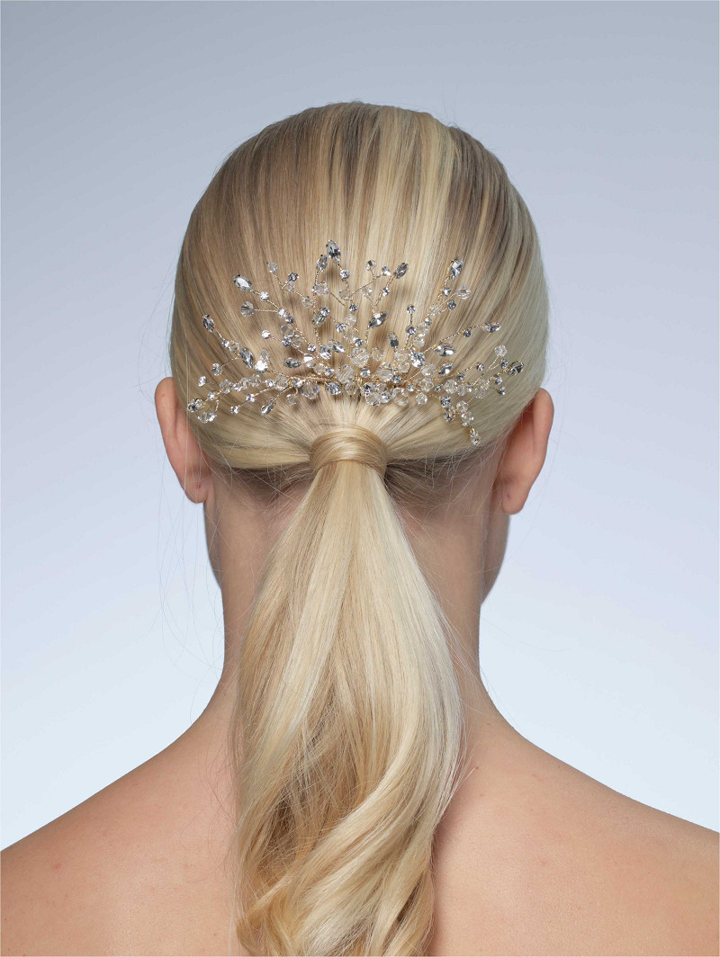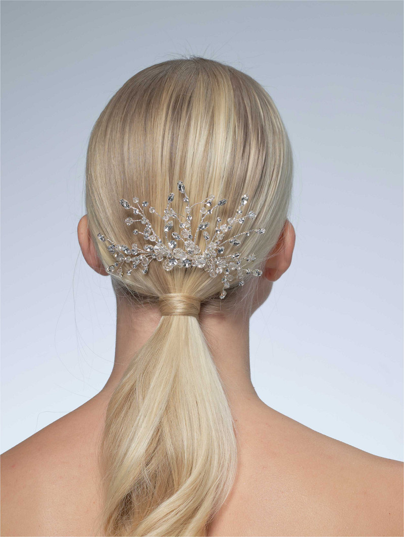 - Dieses Schmuckstück is tan einem Kamm befestigt und lässt sich leicht in eine Brautfrisur integrieren.