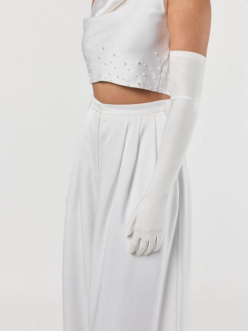 • Lange elfenbeinfarbene Handschuhe aus der Poirier Collection.