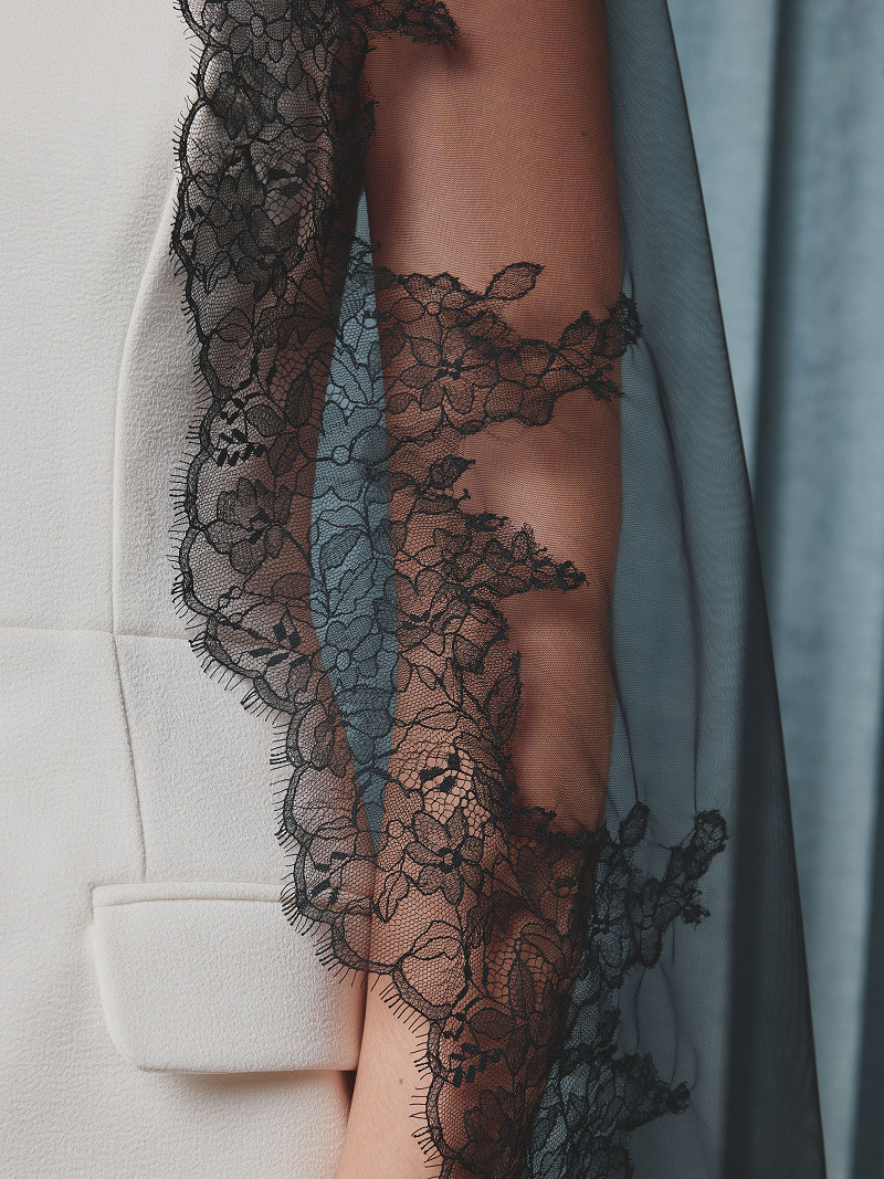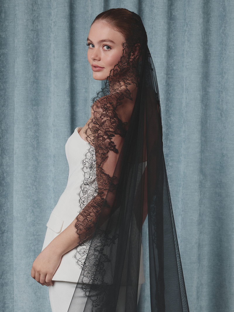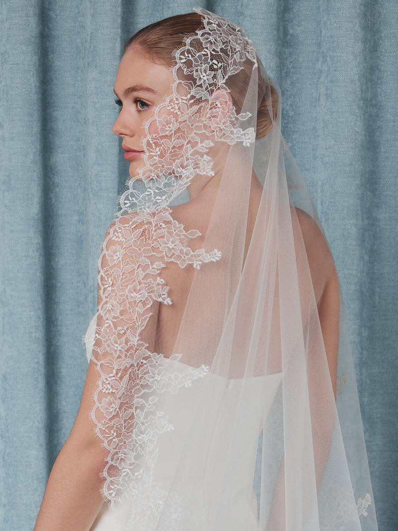 - Ivory-coloured or black round veil made of soft tulle from the Poirier Collection.