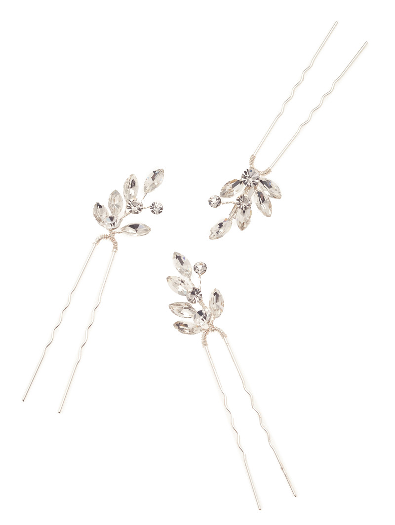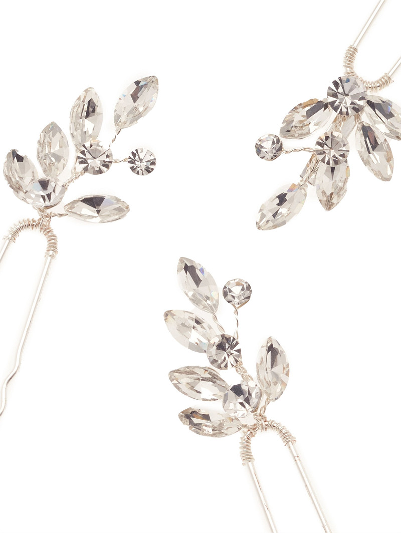 Joya para el cabello en una horquilla con strass en forma de hoja | Paquete de 3