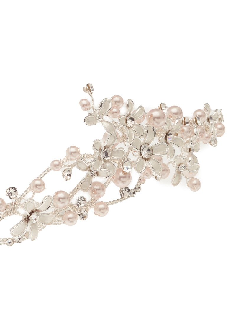 - Disponible en 2 versiones: base dorada con perlas color marfil Y base plateada con perlas color rosa.