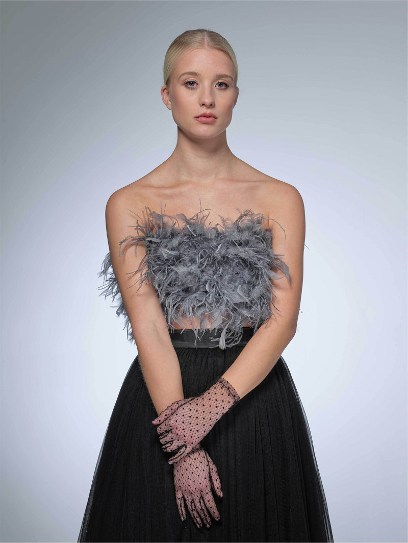 - 2 versiones: tul con topos de tela, ambos de color marfil, Y tul con topos de tela, ambos negros.