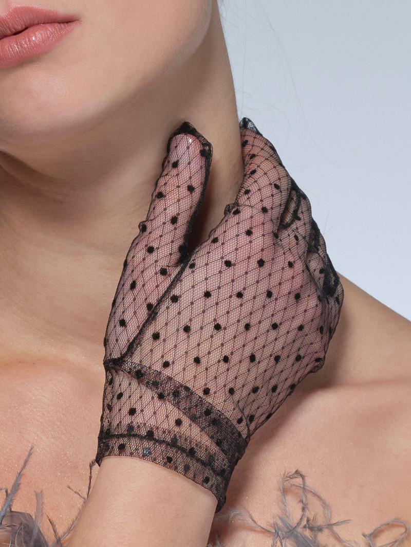 Guantes de tul suave adornados con topos de tela | Longitud: 54 cm | 2 versiones