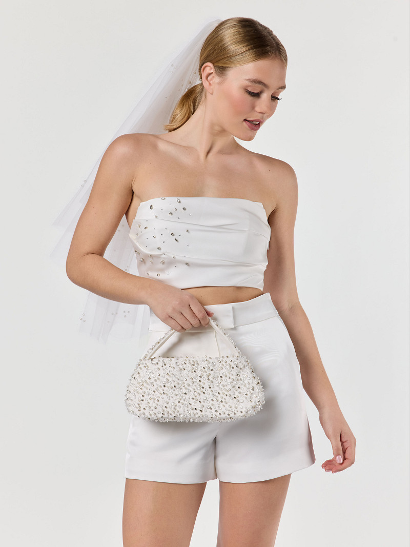 - Bolso Glamrock de crepé bubble de color marfil de la Poirier Collection.