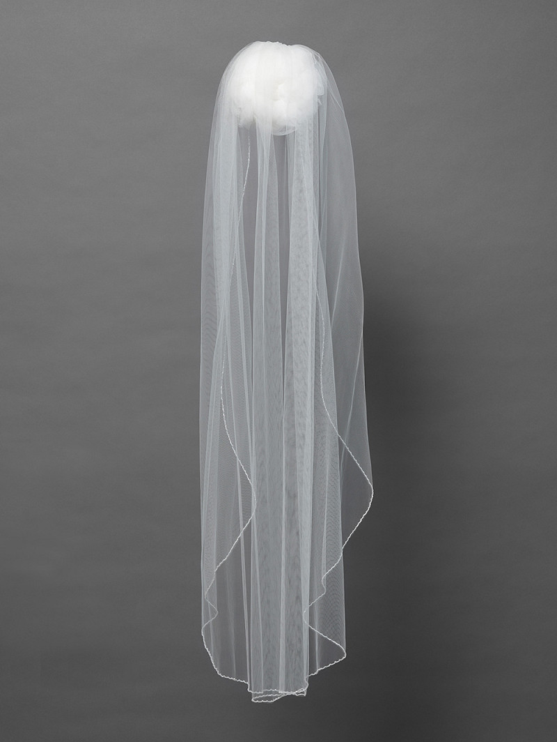 Velo de una capa de tul medio con un borde con abalorios. Longitud 120cm.