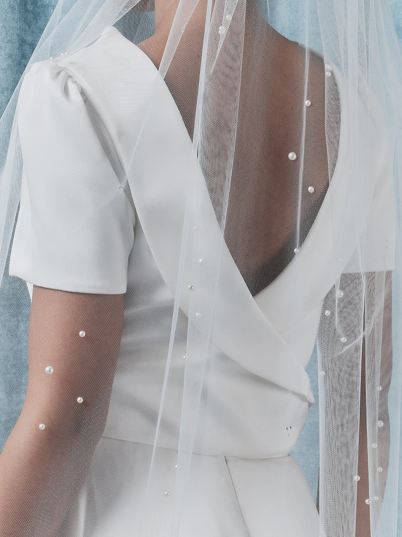 S75528-120/1/MD - Velo de una capa con hermosas perlas mate y strass