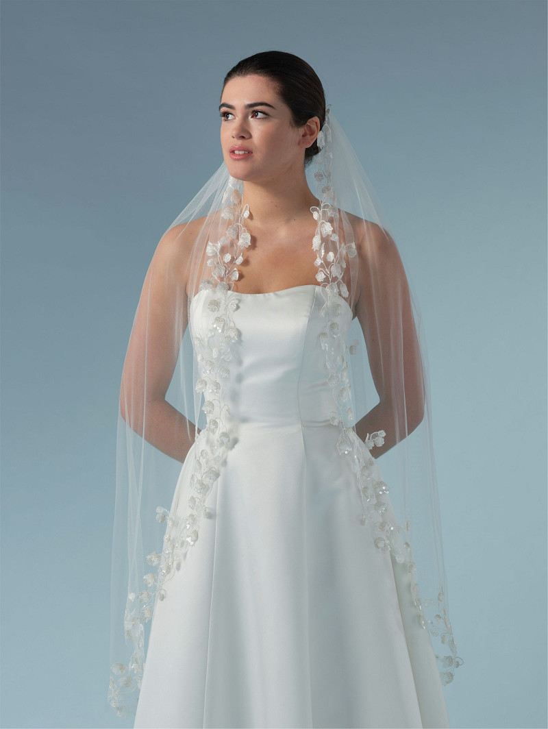 Velo de una capa de tul suave adornado con un motivo de flores bordadas en forma de tulipán y lentejuelas l Longitud: 120 cm | Varias longitudes disponibles