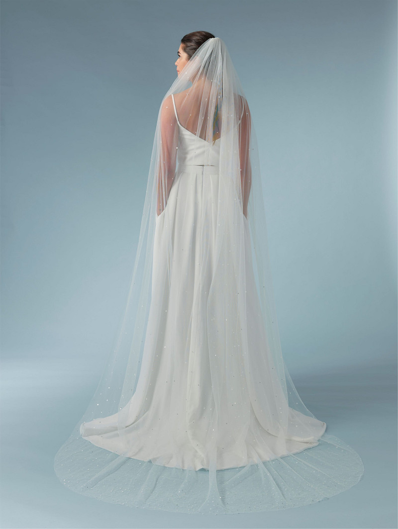 Velo de una capa de tul suave enteramente adornado con topos y lentejuelas | Longitud: 280 cm