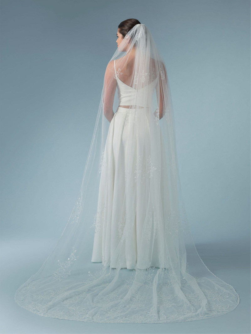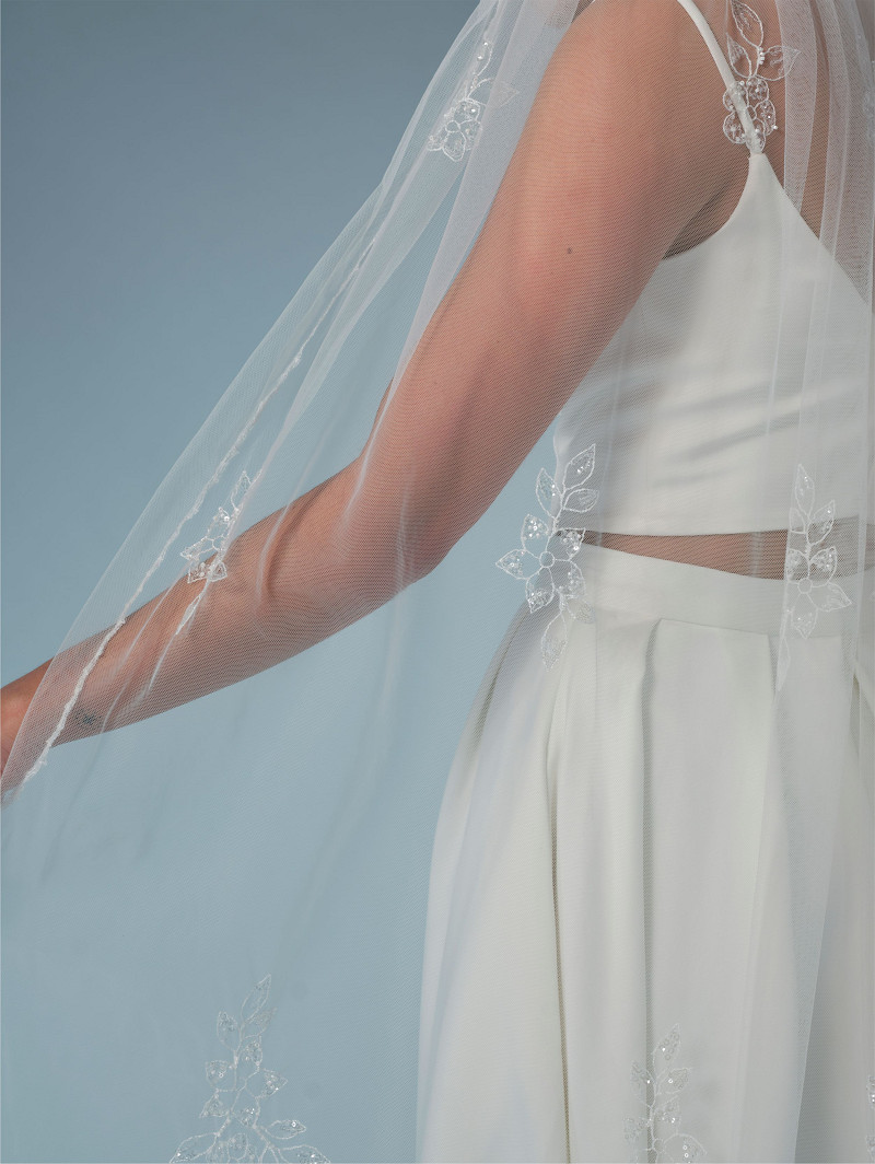 Velo de una capa de tul suave adornado con un motivo de hojas bordadas y lentejuelas | Longitud: 280 cm
