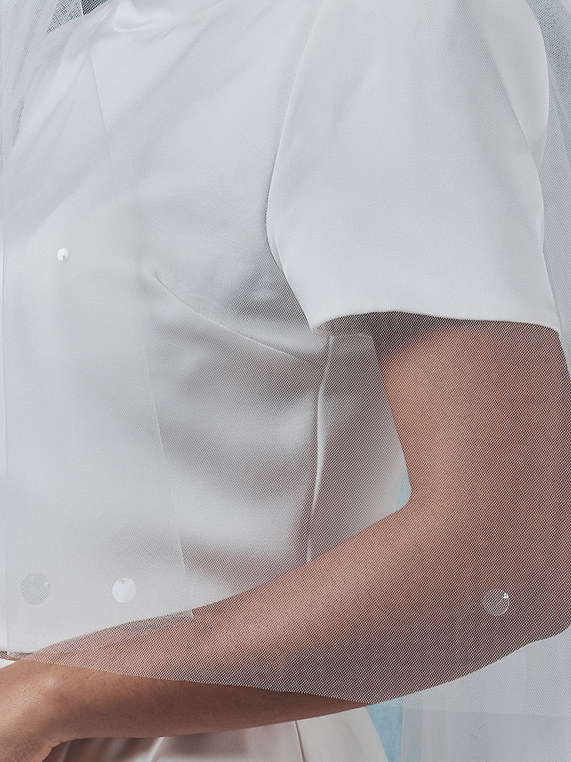 - Hecho de tul medio de doble capa.