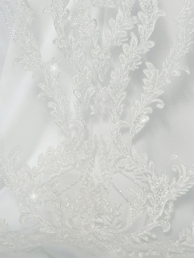 - Producto: S712-400/1/soft –Velo de tul suave de lujo con aplicaciones de encaje, adornado con hojas y lentejuelas