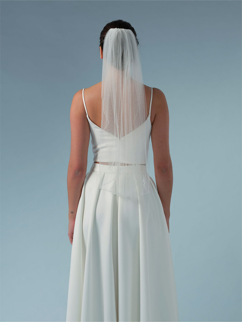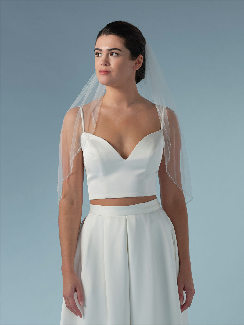 Velo de una sola capa de tul suave color marfil adornado con cristales en el borde | Longitud: 75 cm | Disponible en varias longitudes