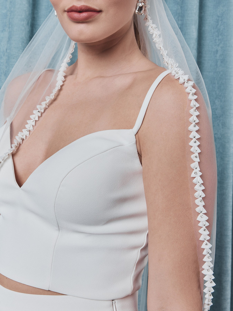 S75503-080/1/SF - Velo de una capa de tul suave con flores en 3D