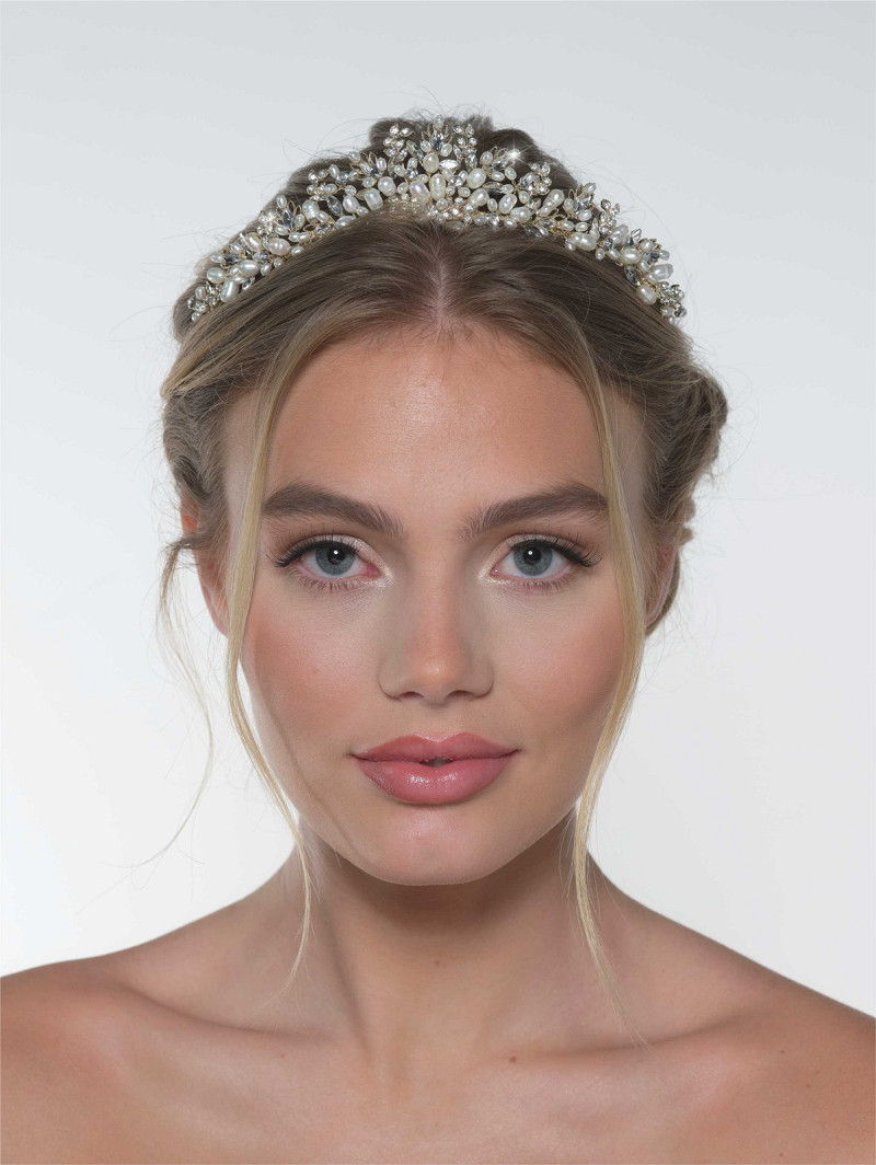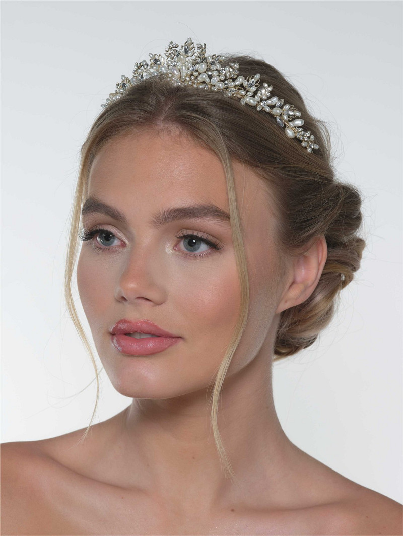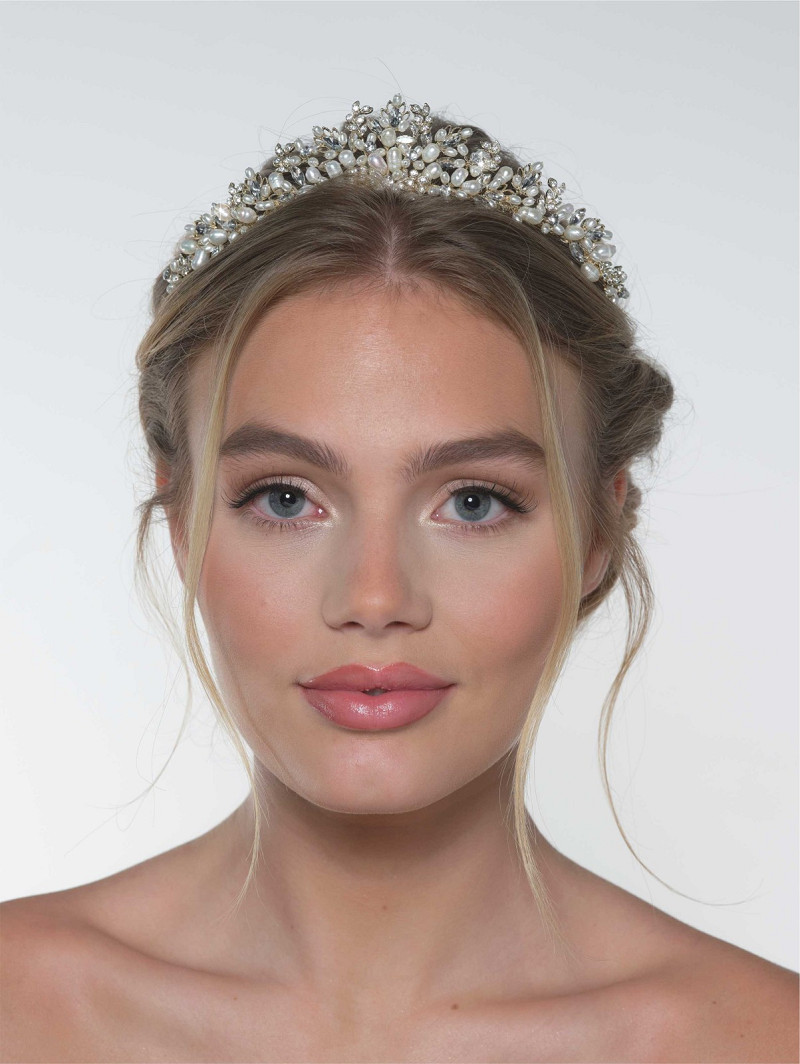 Tiara en forma de corona decorada con strass y perlas de agua dulce