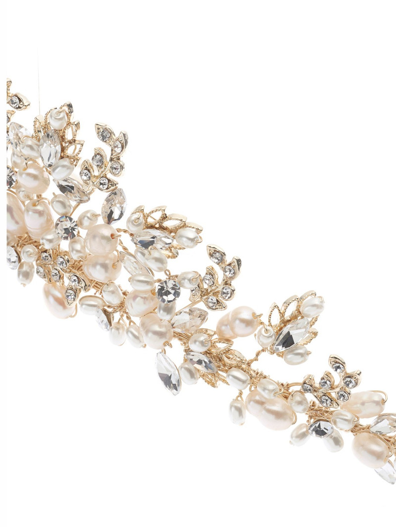 - Borde alto decorado con strass y perlas de agua dulce color marfil.
