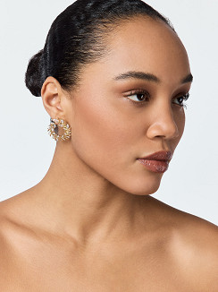 JE-75214 - Fraaie oorbellen in de vorm van lauwerkransjes met witte en champagnekleurige strasssteentjes