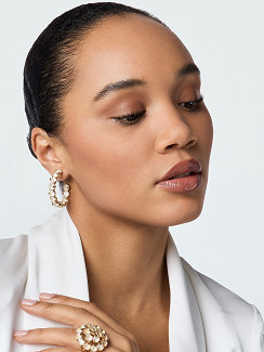JE-75233 - Trendy gouden oorringen bezet met prachtige ivoorkleurige Swarovski steentjes