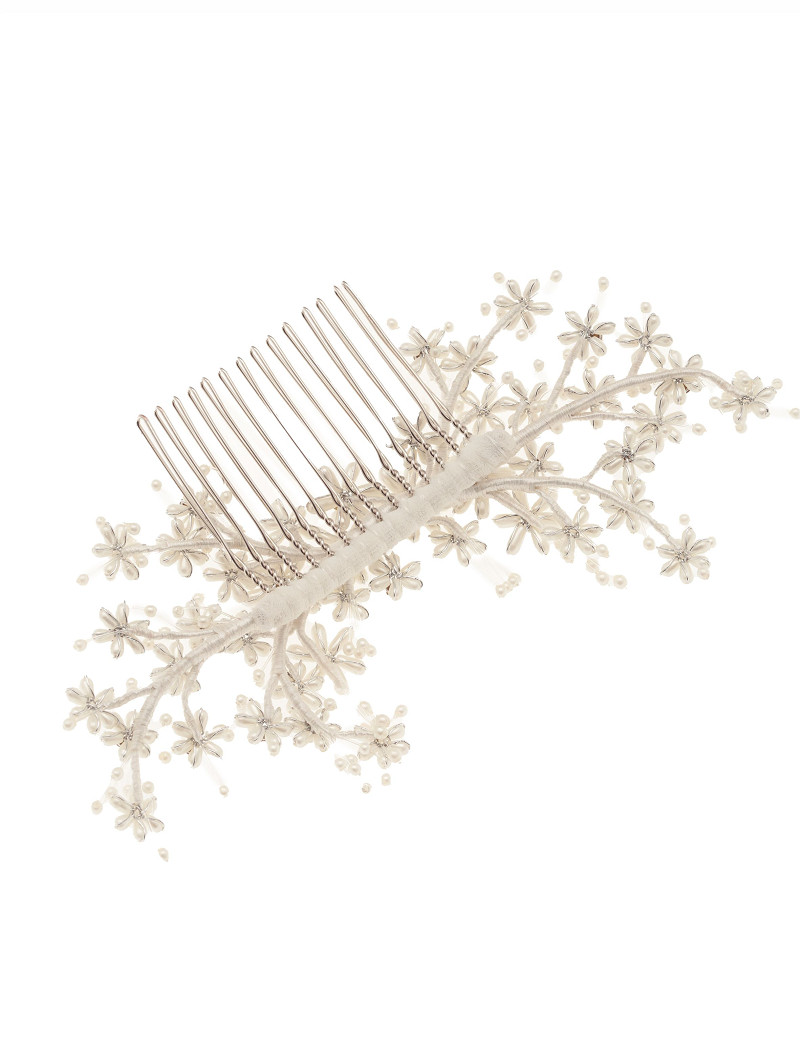 Bijou de cheveux sur un peigne orné de perles de nacre, de perles et de strass | horizontale | fait main