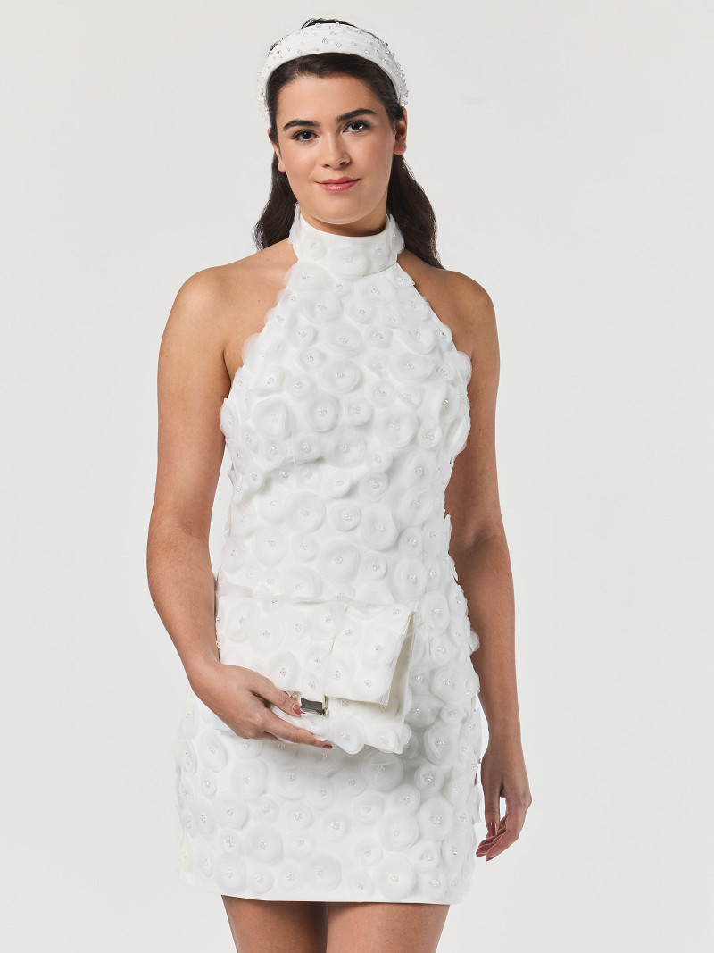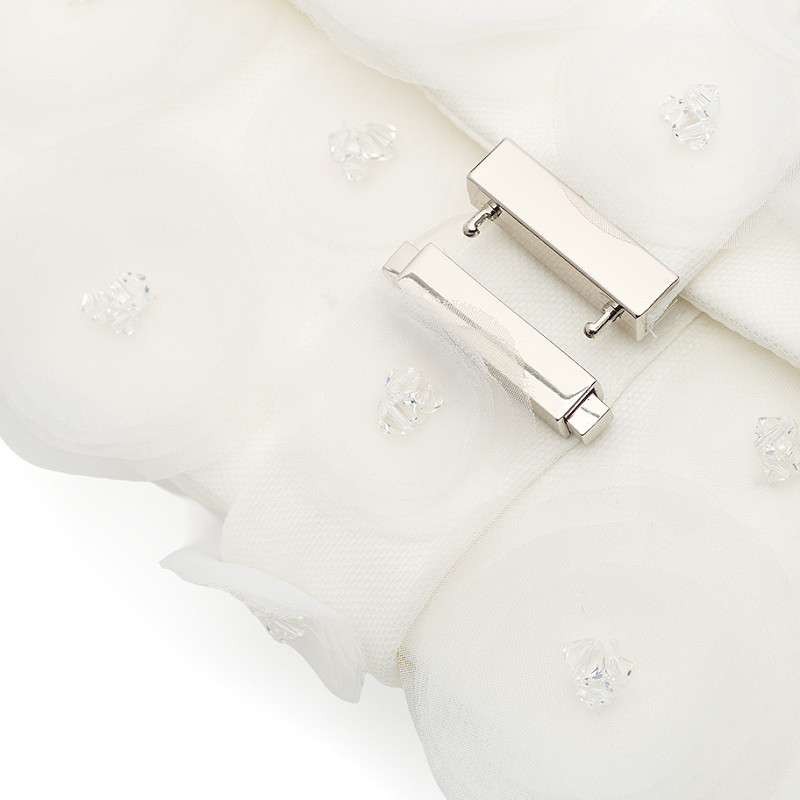 - Décorée d'applications en organza avec des cristaux Swarovski.