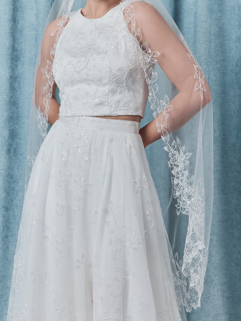 S75502-120/1/SF - Voile monocouche en tulle souple avec perles et paillettes