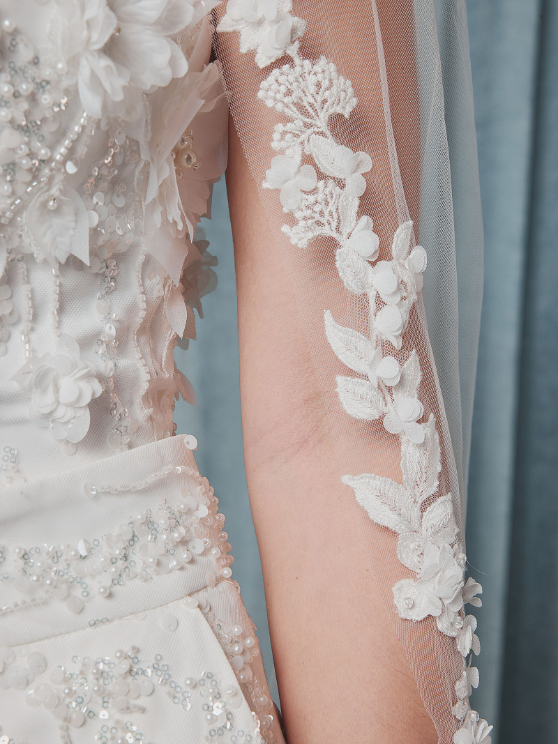 - Décoré de dentelle et de fleurs 3D.