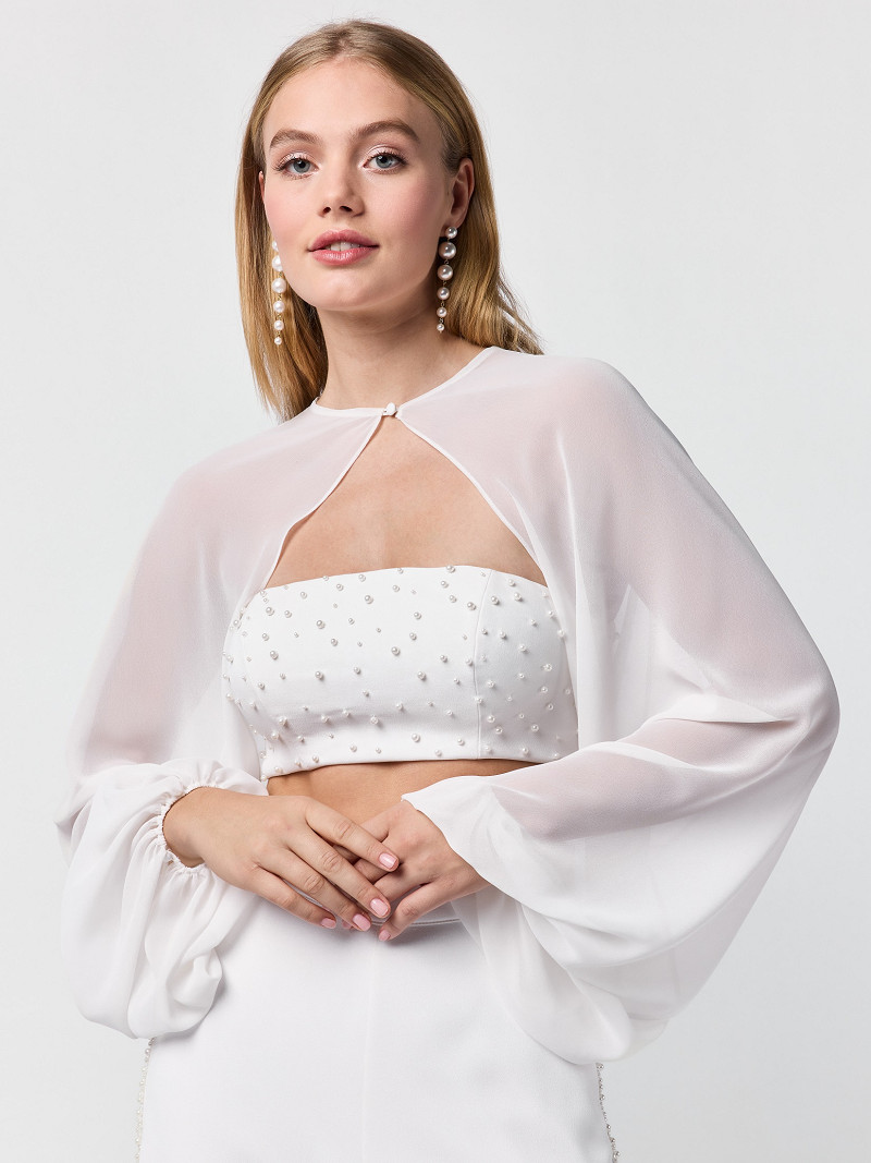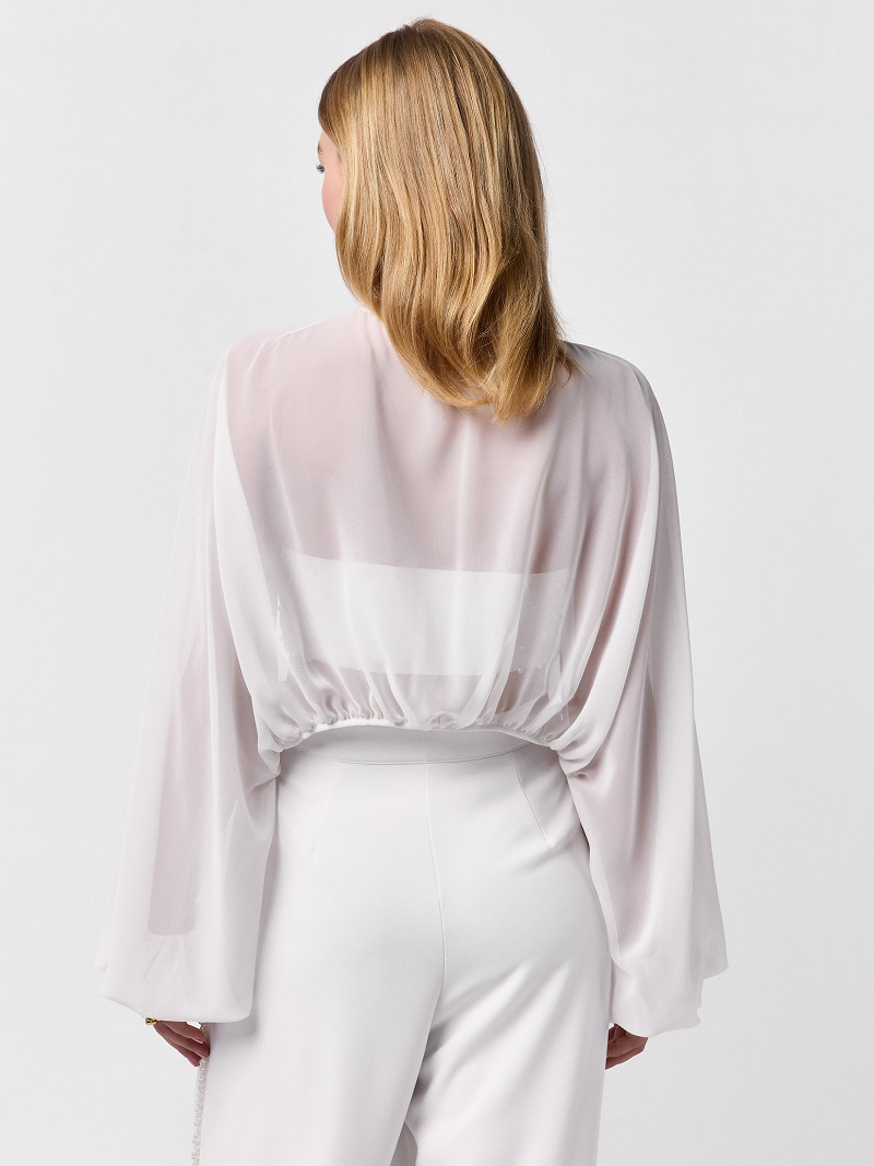 ST-75322 - Elégant cardigan en mousseline de soie avec manches longues bouffantes et dos plissé
