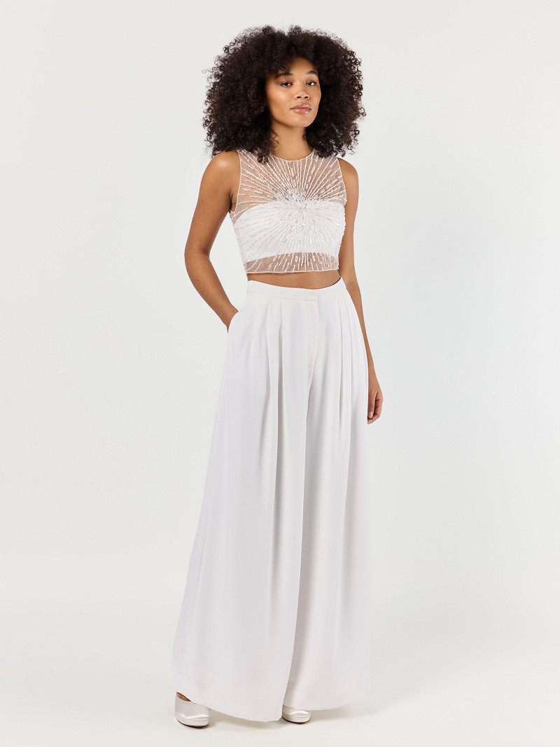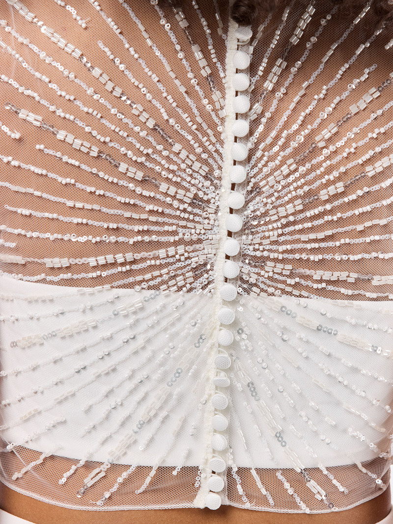 - Haut en tulle ivoire sans manches de la collection Poirier.