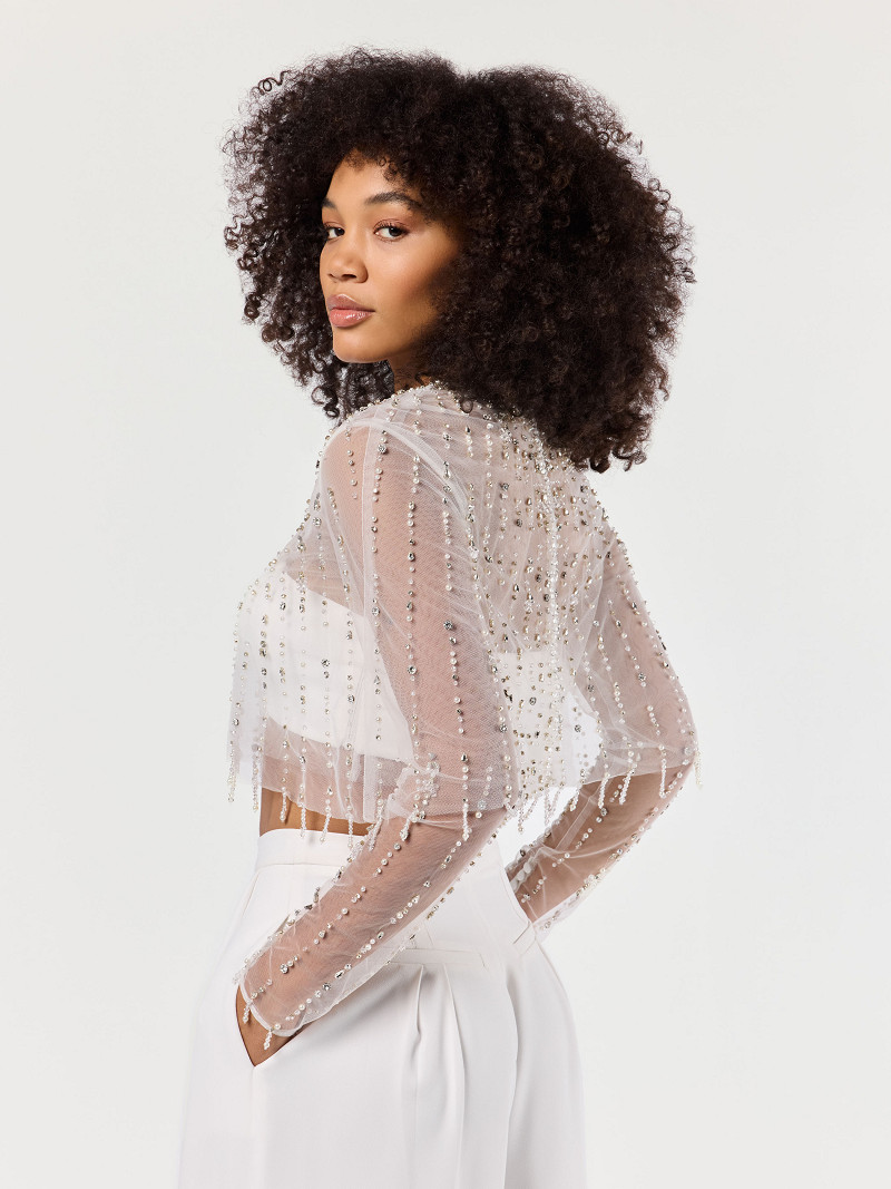 - Haut à manches longues en tulle ivoire de la collection Poirier.
