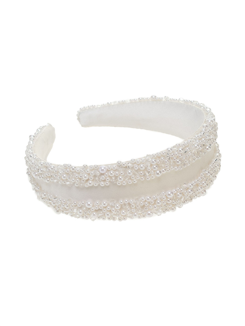 Satijnen diadeem versierd met parels en kraaltjes van verschillende grootte