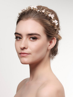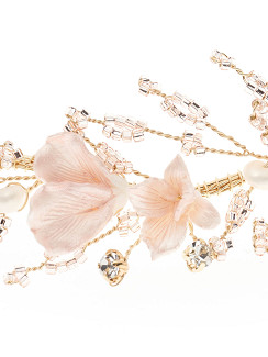- Kenmerken: goudkleurig haarsieraad, roze porseleinen bloemetjes, ivoorkleurige parels, strasssteentjes, kristalletjes