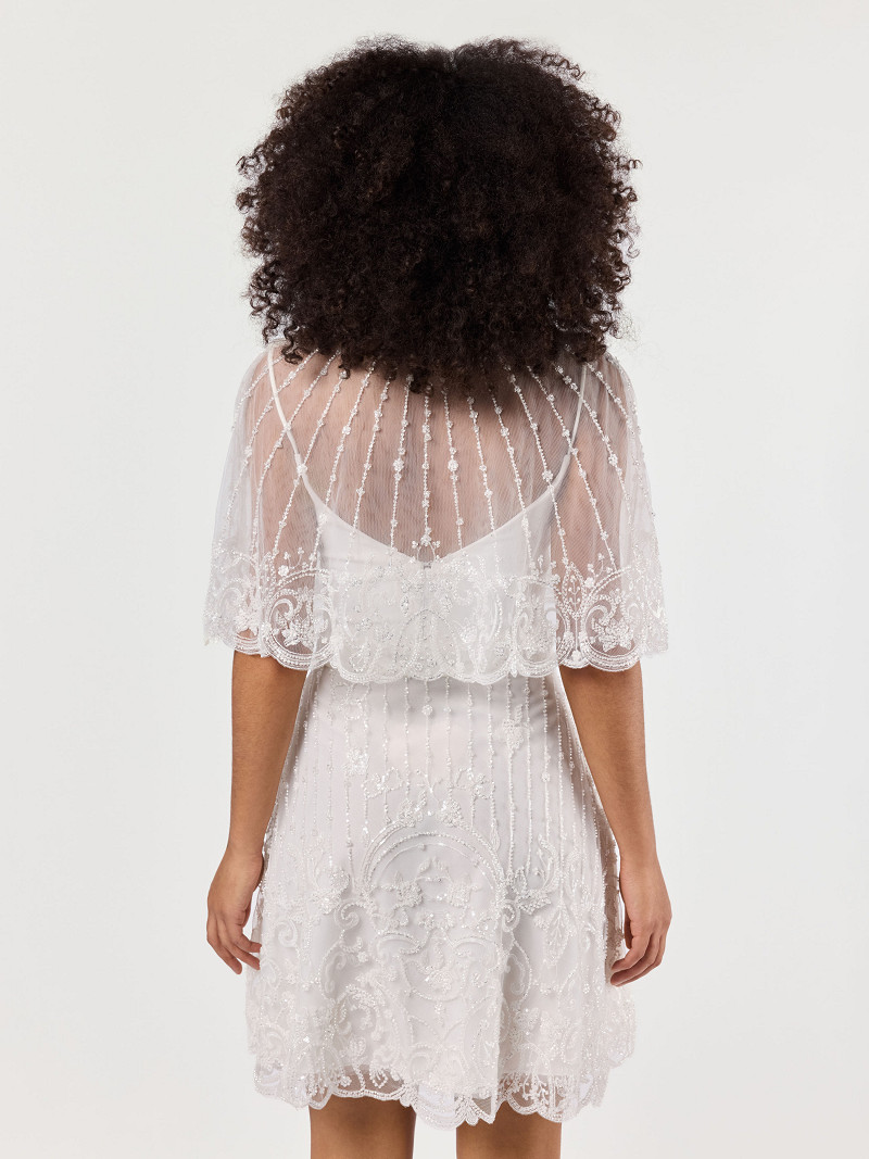 - Cappa corta in tulle di color avorio della Poirier Collection.