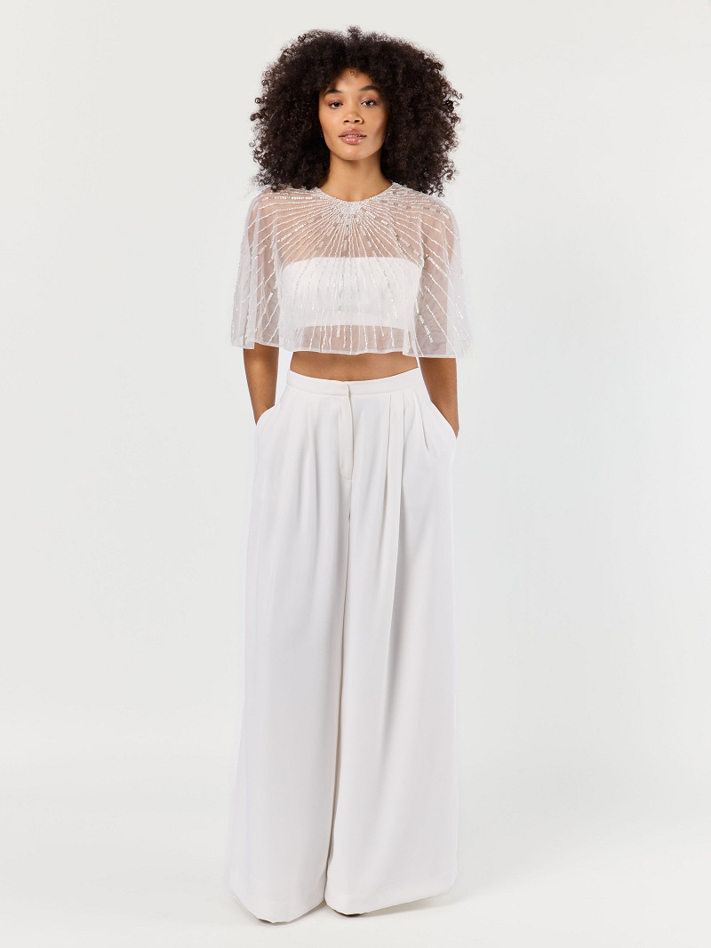 - Cappa corta in tulle di color avorio della Poirier Collection.