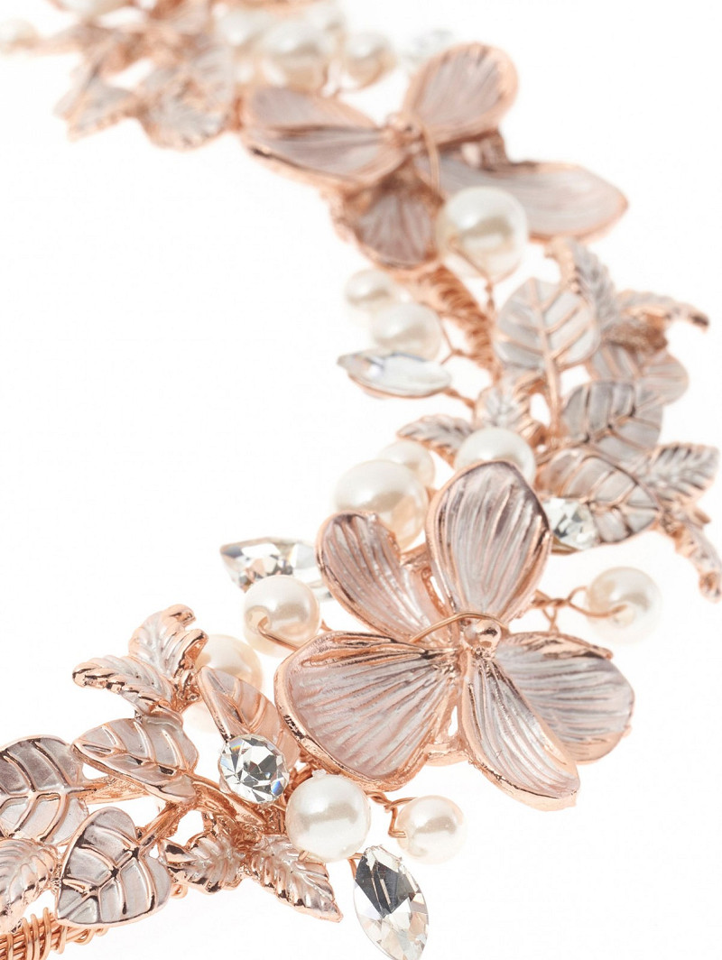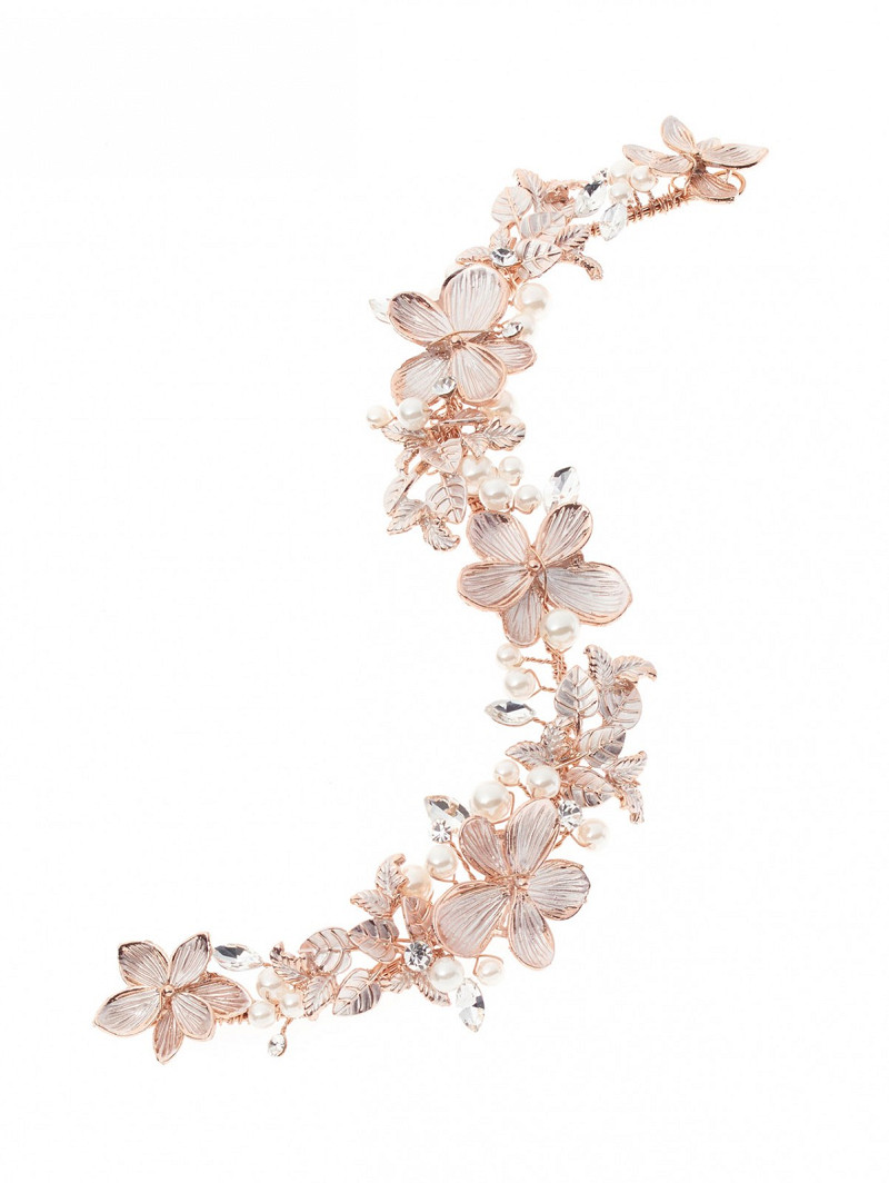 - Features: Silver-colored or gold-colored or rosé gold-colored flexible hair jewel with silver-colored or gold-colored or rosé gold-colored flowers, pearls, rhinestones, crystals