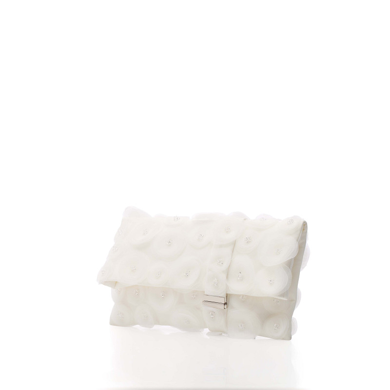 - Clutch in raso opaco di color avorio della linea Poppy della Collezione GEM.