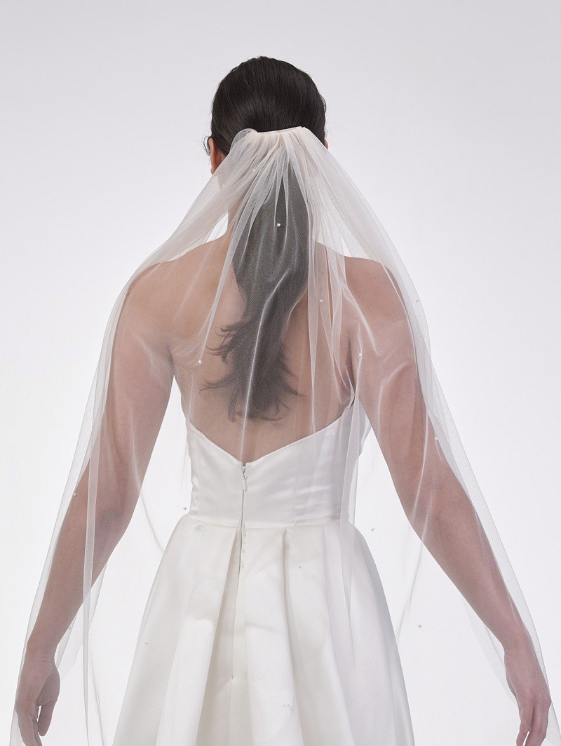 Single-layer veil made out of soft-tulle decorated with ivory-coloured pearls