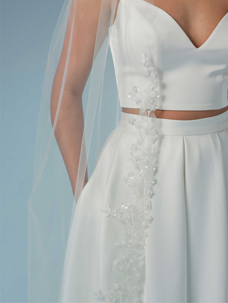 Velo composto da uno strato di tulle medio-rigido con il bordo impreziosito da un motivo con fiori creati con le paillettes | lunghezza: 210 cm (82,6 pollici)