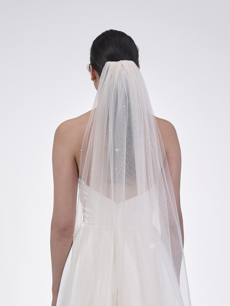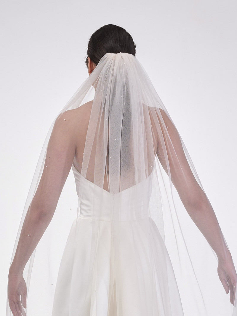 Single-layer bridal veil made out of soft-tulle embellished with ivory-coloured pearls