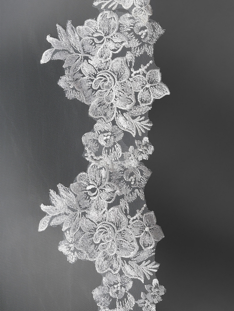 - Product: S364-280/1/medium – Single-layer bridal veil with cut lace with a flower pattern