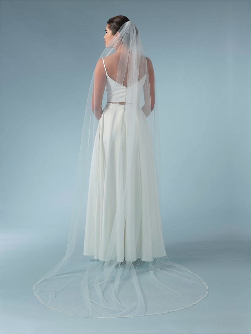 Velo composto da uno strato di tulle morbido color avorio con due fili di perle sul bordo | lunghezza: 280 cm (110,2 pollici) | varie lunghezze