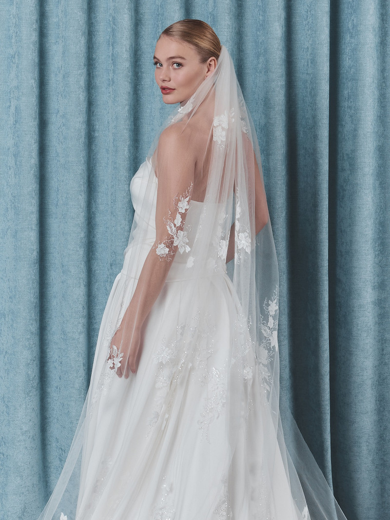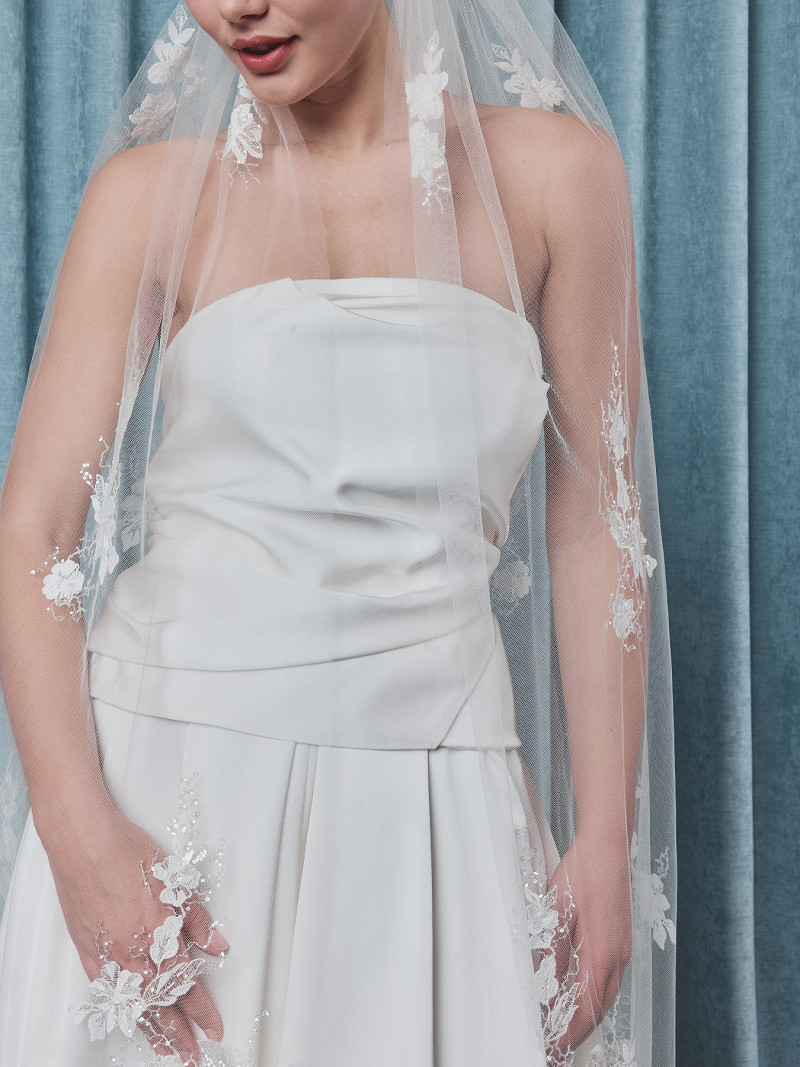 S75525-280/1/SF – Elegante velo composto da uno strato di tulle morbido con uno splendido ricamo dal motivo floreale