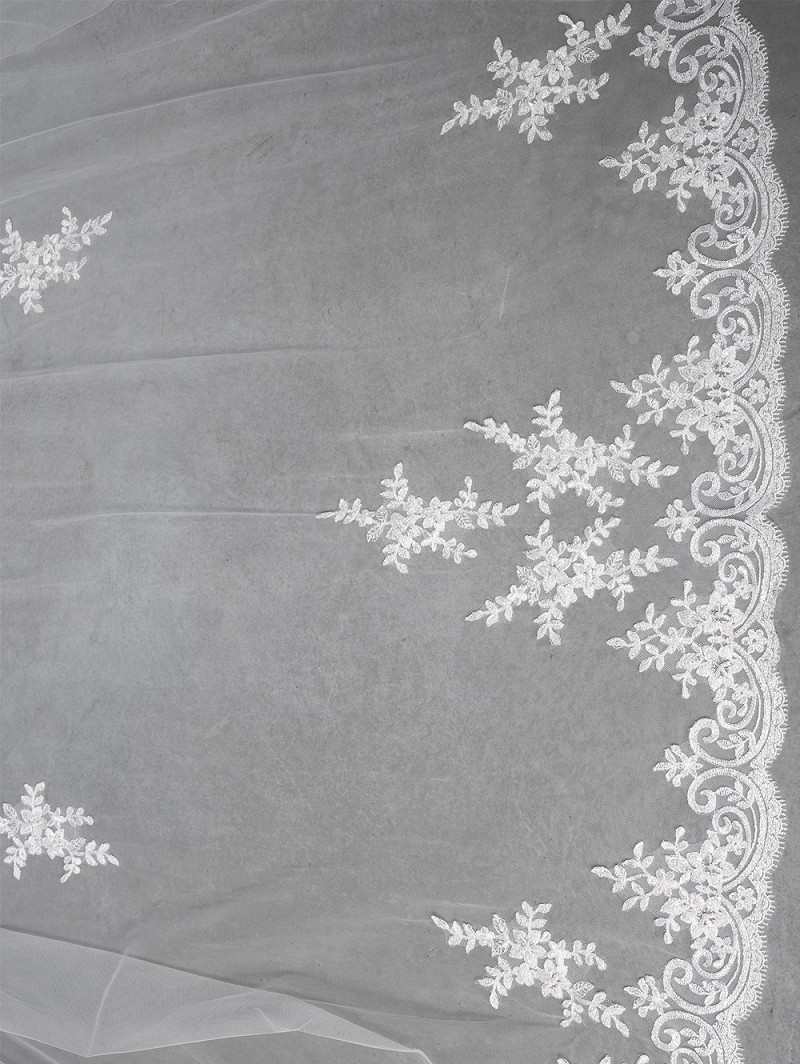 - Caratteristiche: velo composto da uno strato di tulle medio-rigido ondulato, pizzo italiano, impreziosito da una fantasia con fiori, foglie, perle e paillettes, color avorio, 300 cm (118,1 pollici)