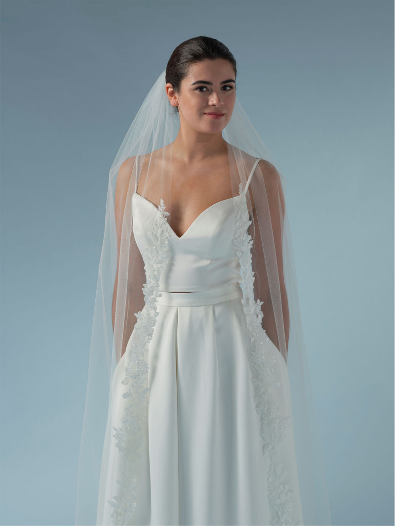 Velo composto da uno strato di tulle medio-rigido con il bordo impreziosito da un motivo con fiori e foglie | lunghezza: 300 cm (118,1 pollici) | varie lunghezze