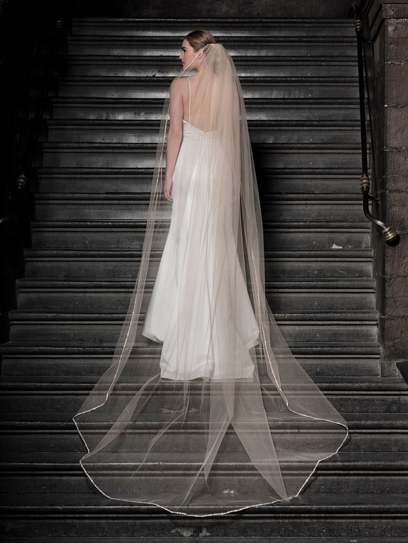 - When you are looking for a veil with a special embellishment, make sure to choose bridal veil S158-300/1/SOFT of the Essential Collection of Poirier. This veil is 300 cm long (118.1 inch) and has an embellishment of embroidered dots across its edge. Choose this veil to complete your bridal look. This veil is also available with a length of 210 cm/82.6 inch (S158-210/1/SOFT).