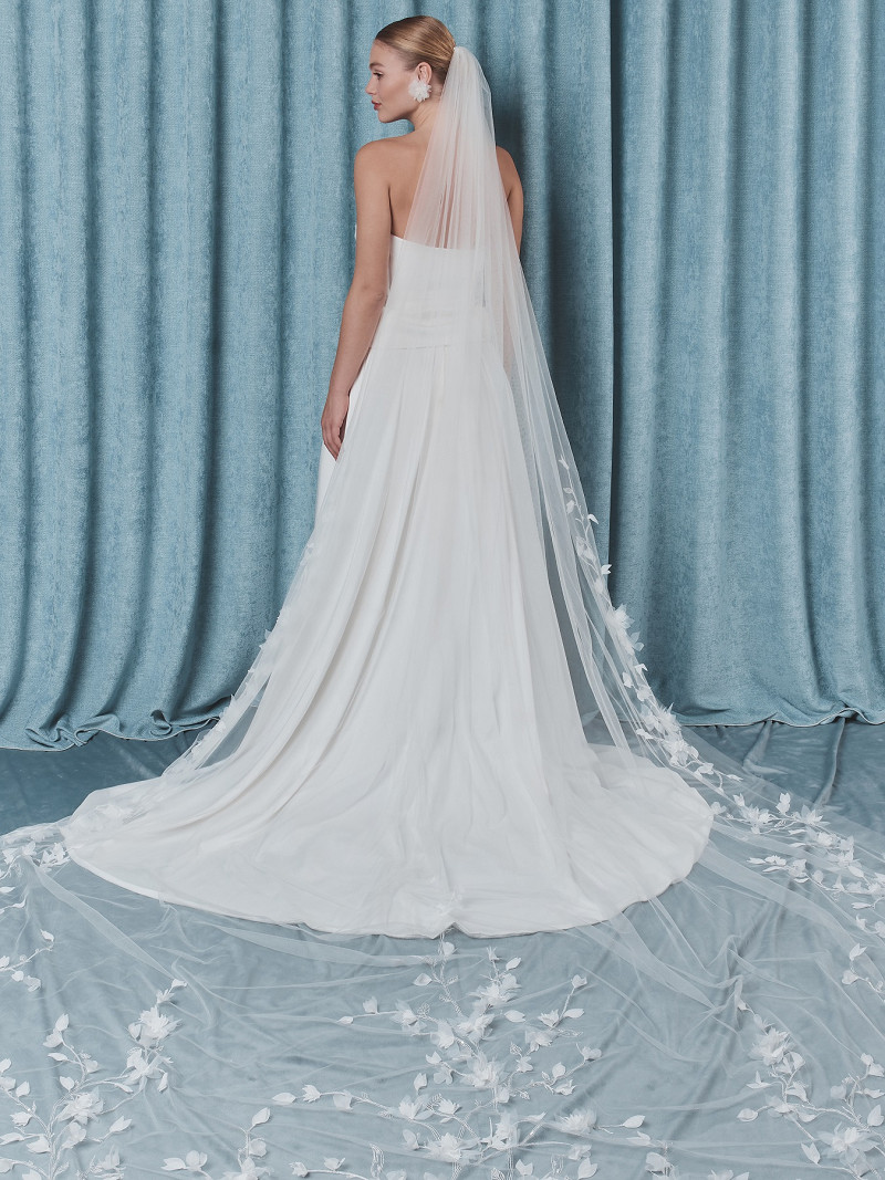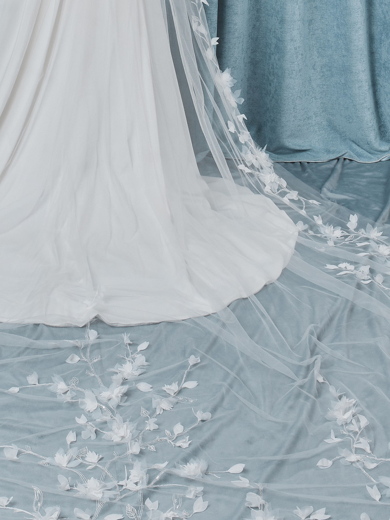 S75511-350/1/SF – Velo composto da uno strato di tulle morbido, magnificamente ricamato con un motivo floreale con fiori in 3D