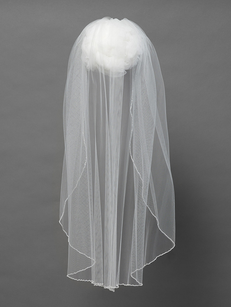 - Product: S43-080/1/MED – Veil made of single-layer medium-tulle with an edge of beads | Length: 80 cm (31.4 inch)