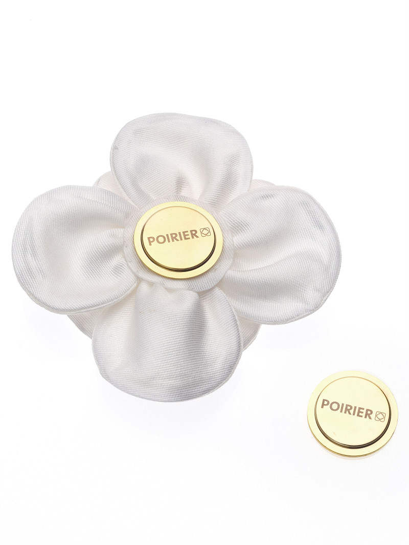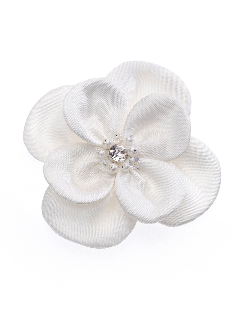 • Kleine broche van ivoorkleurige Mikado satijn uit de Poirier Collection.