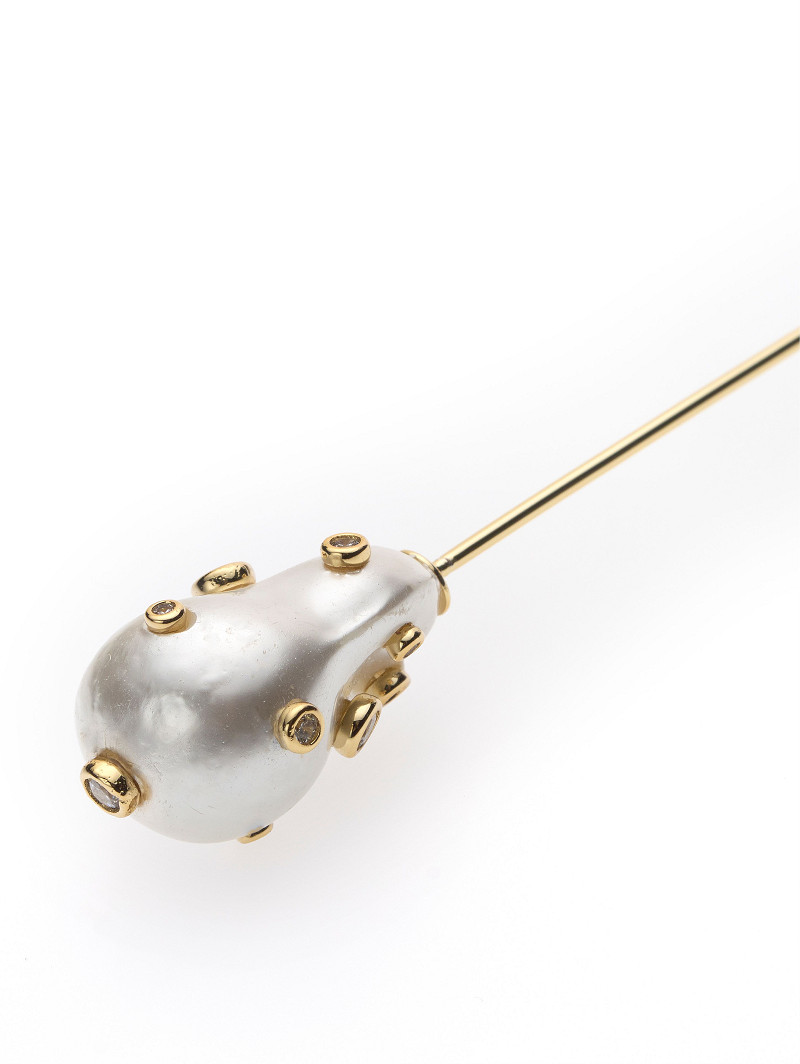 CB-75065 - Fraaie gouden colbert/stropdas pin met zoetwaterparel