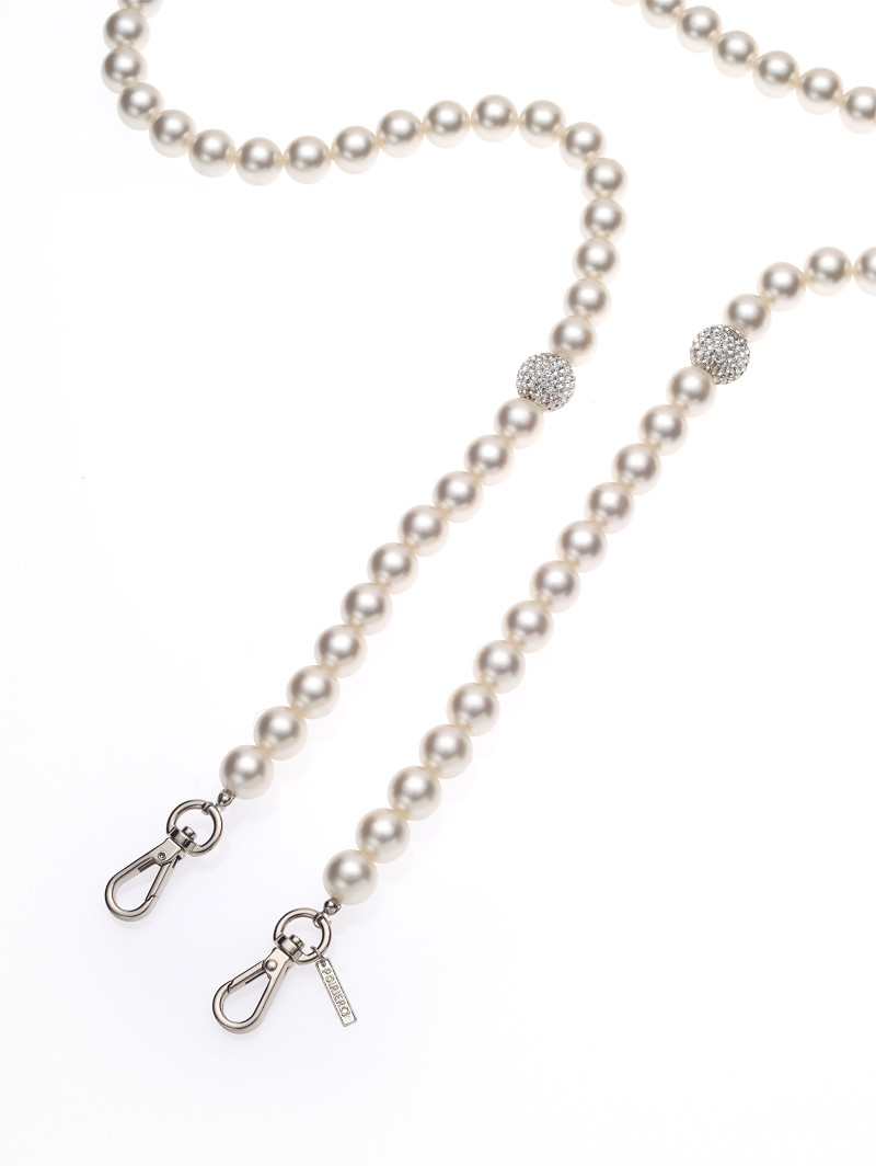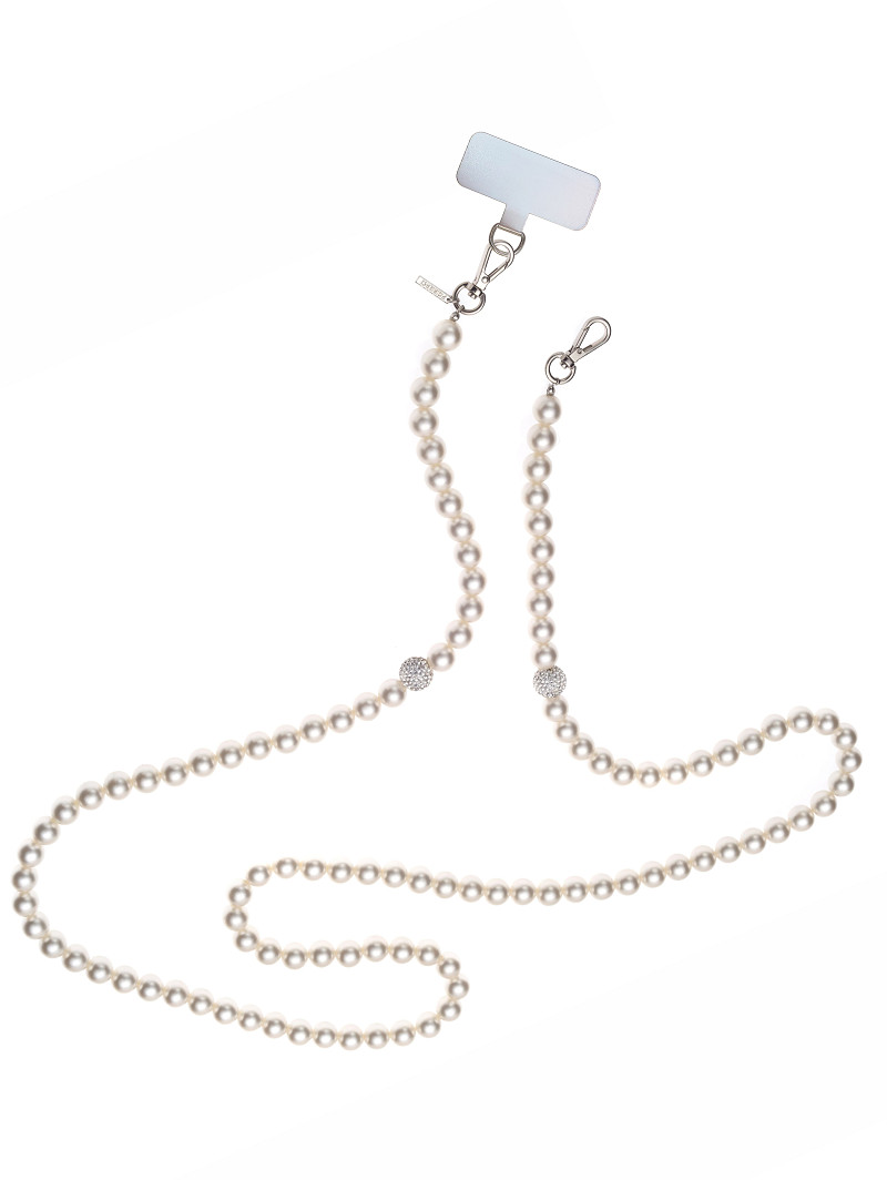 AC-75601 - Telefoonketting van matte parels en 2 glinsterende strassbolletjes