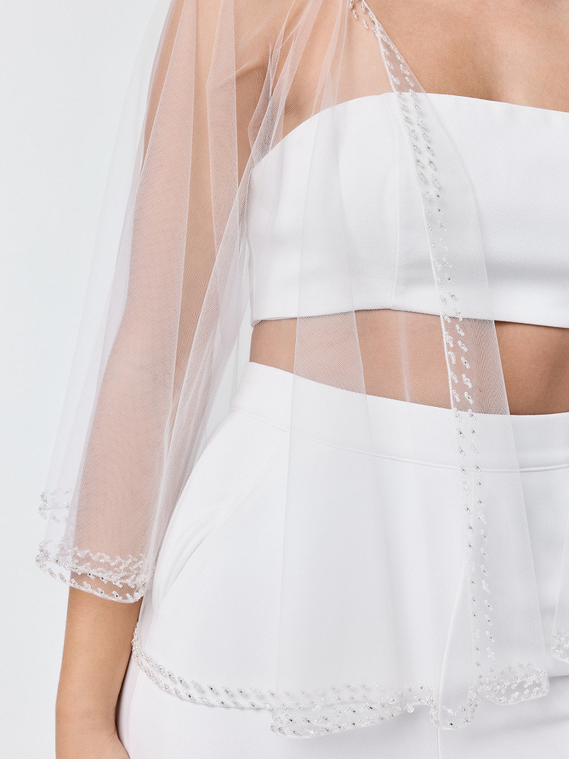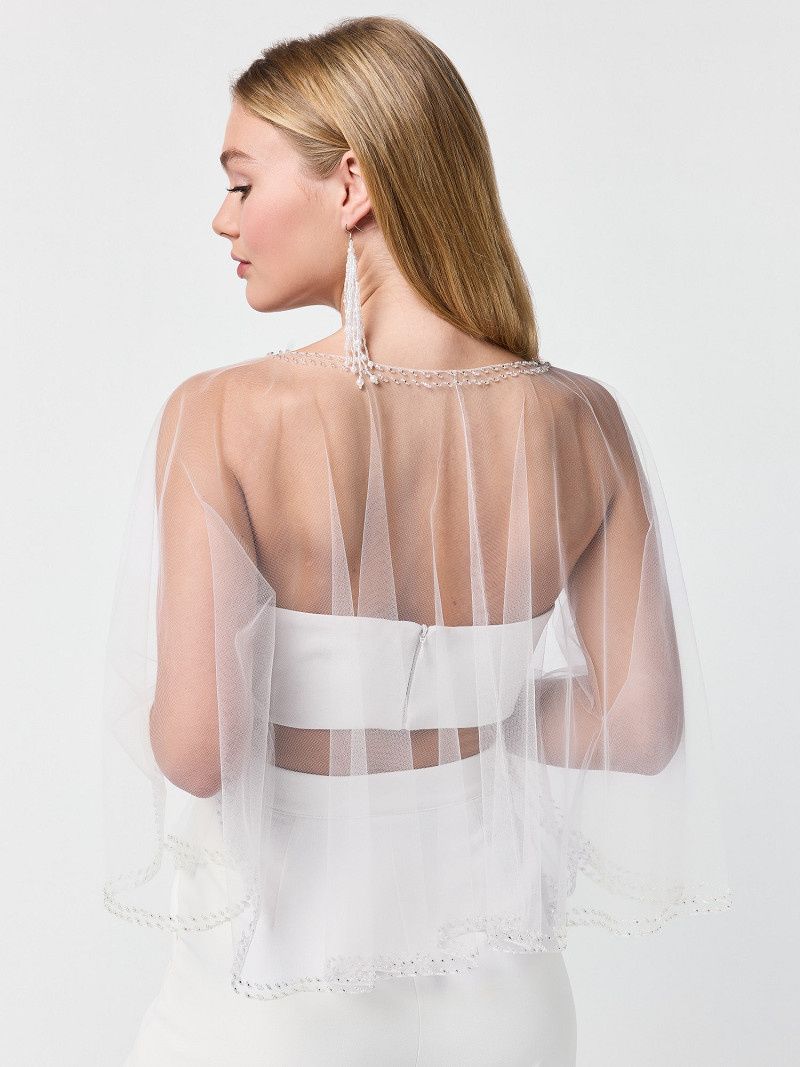 • Cape met korte mouwen gemaakt van tule.